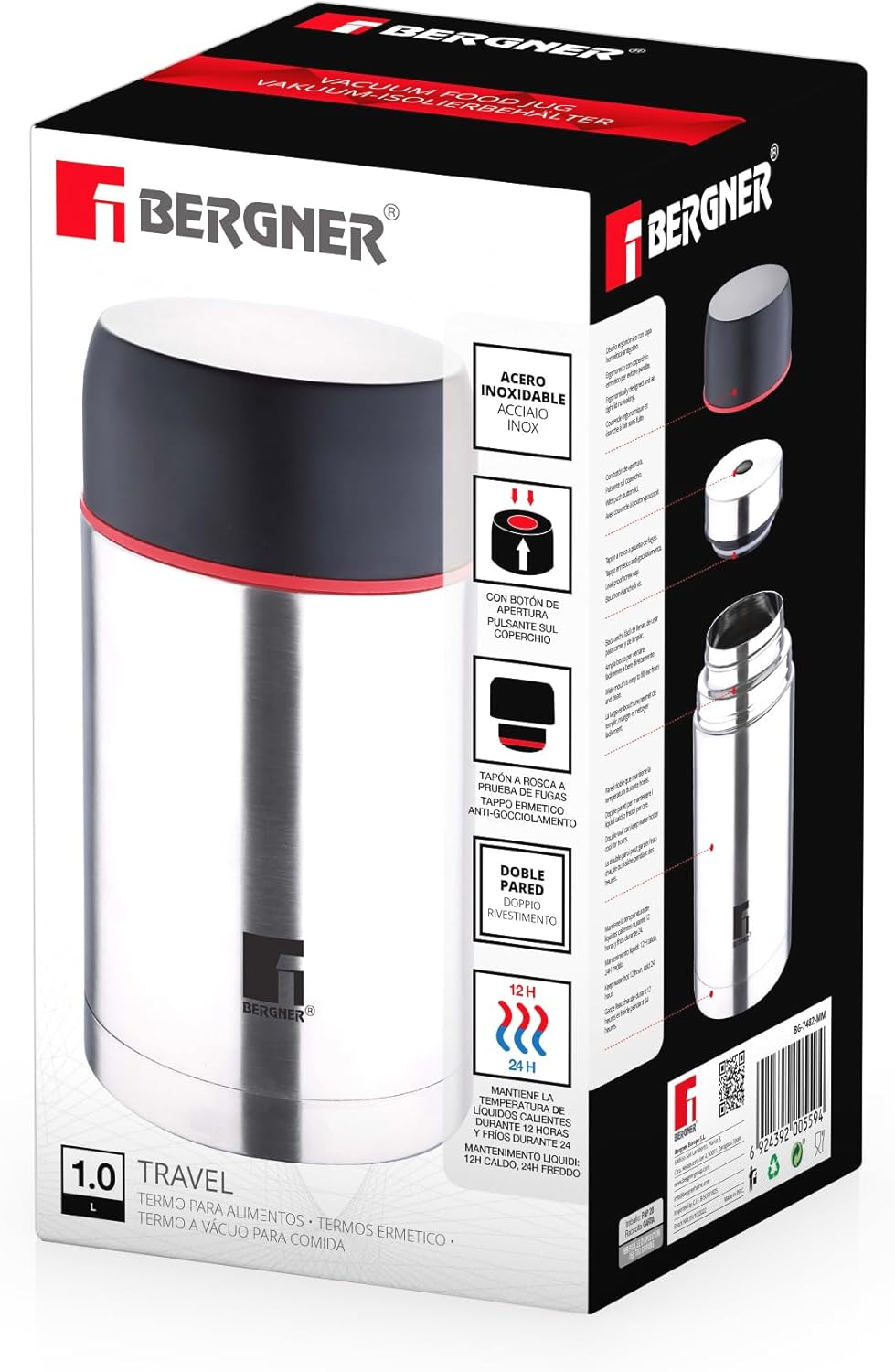 ترمس طعام من الفولاذ المقاوم للصدأ غير اللامع من Bergner (1 لتر)